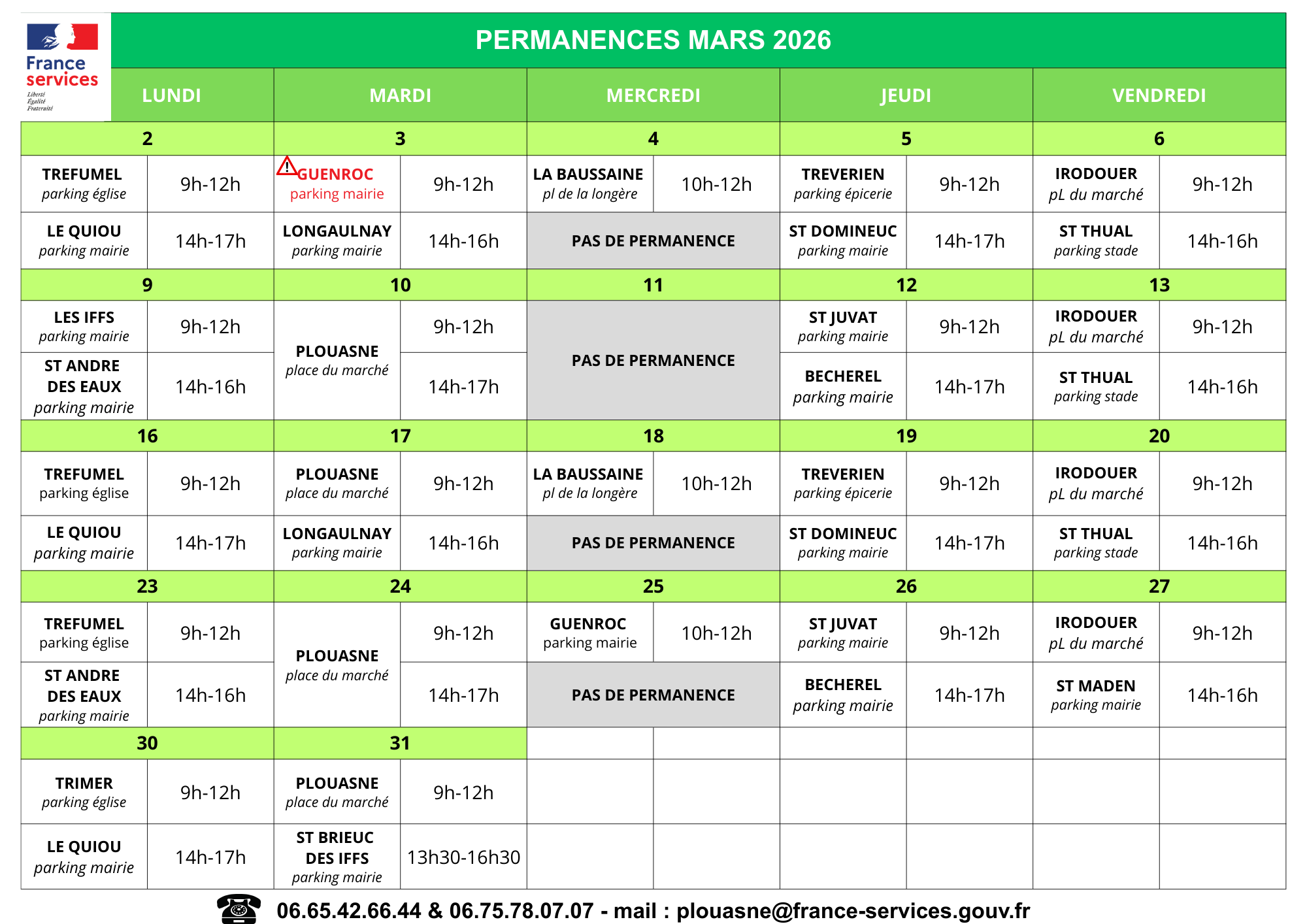 Permanence France Service pour le mois de Mars :