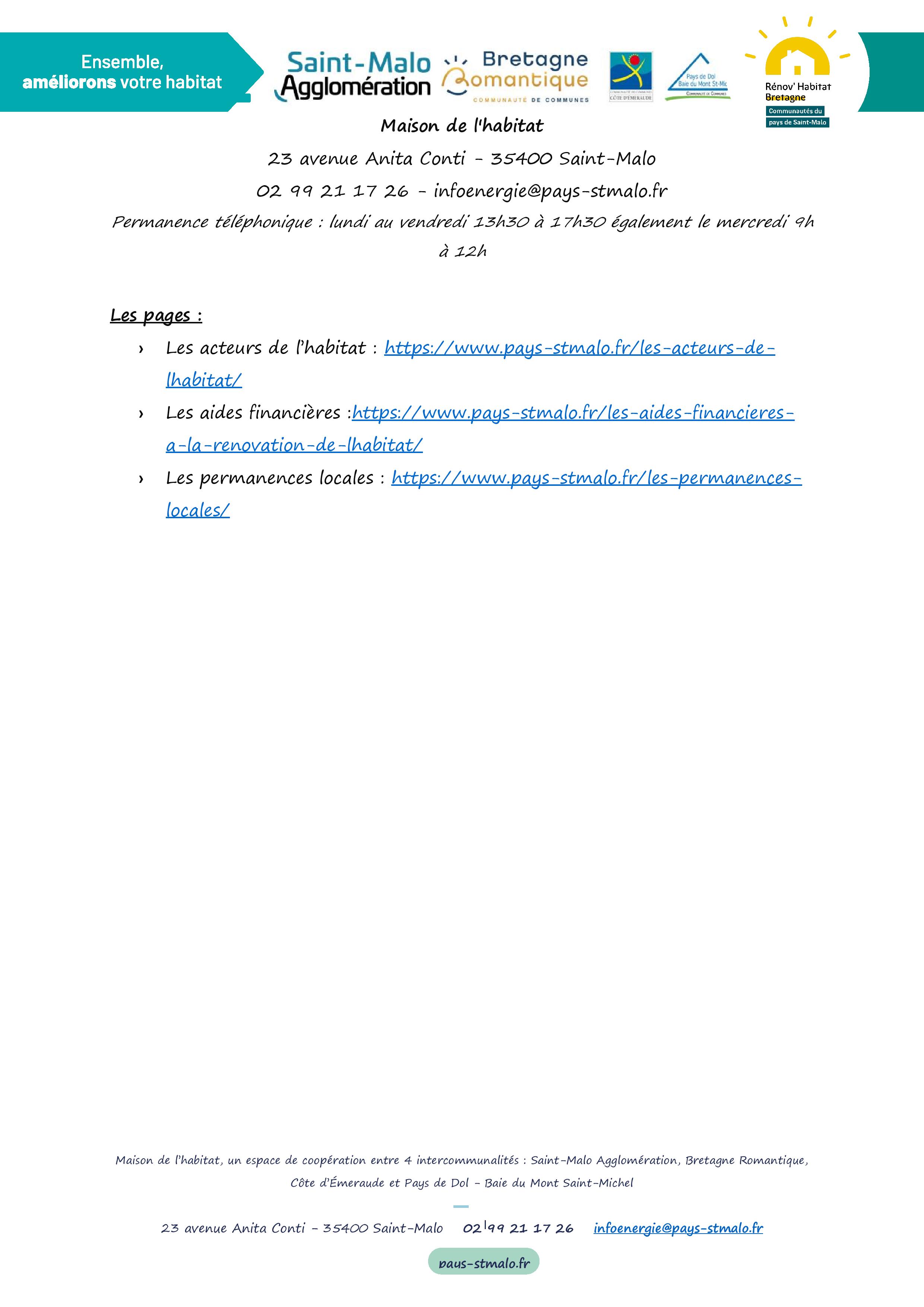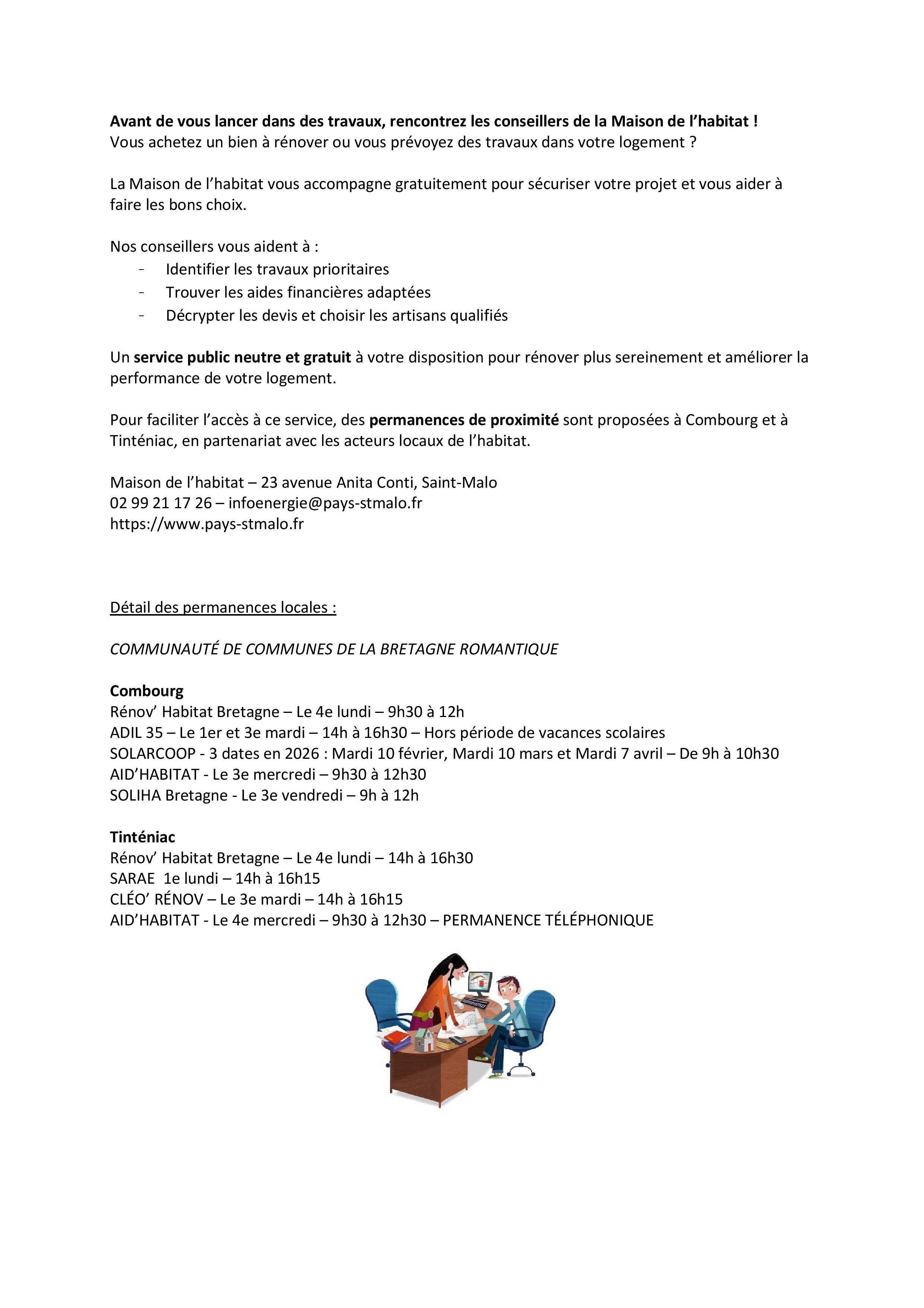 Vous pouvez retrouver l’ensemble des permanences sur le site du Pays de Saint-Malo :
