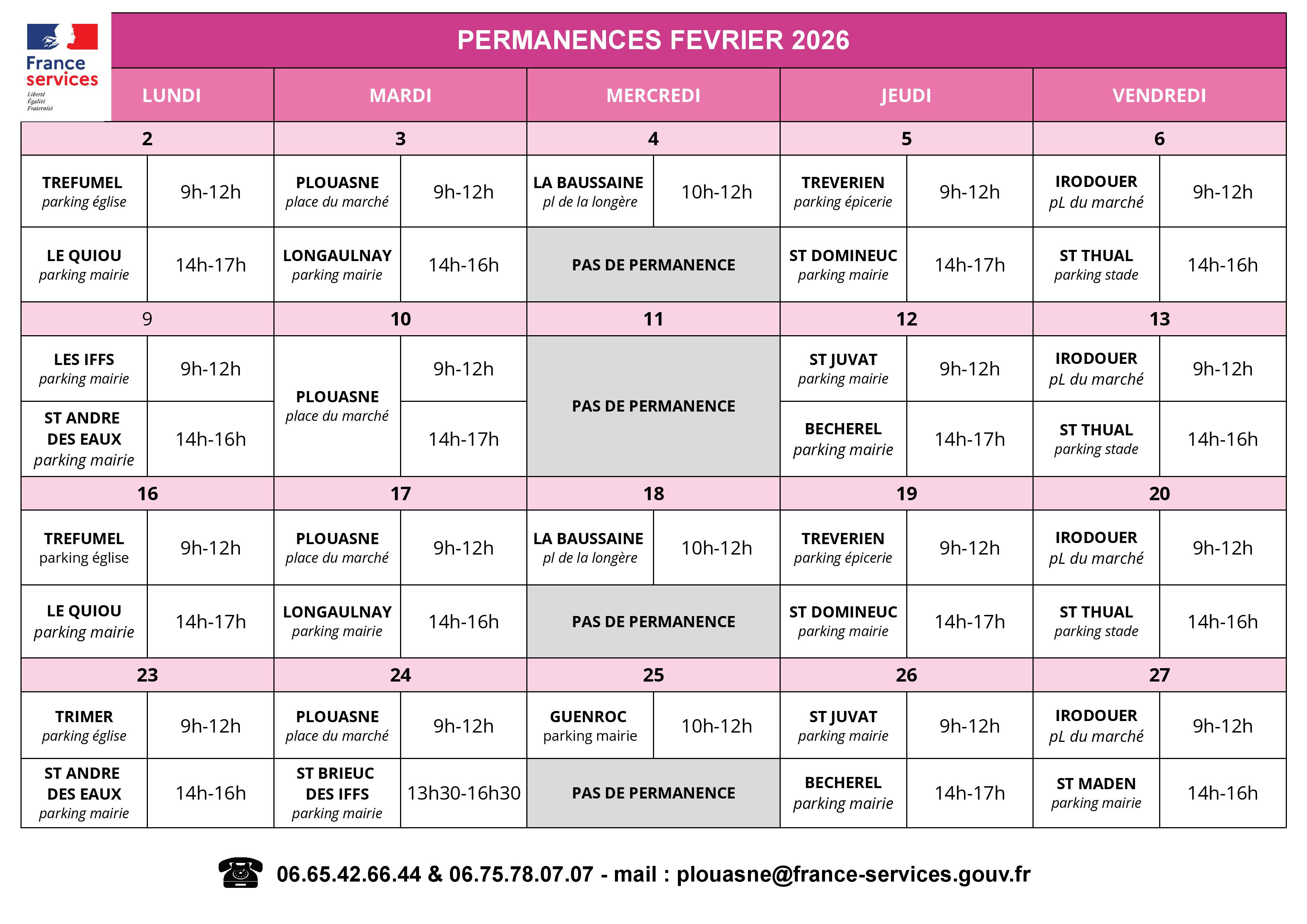 Permanence France Service pour le mois de Février :