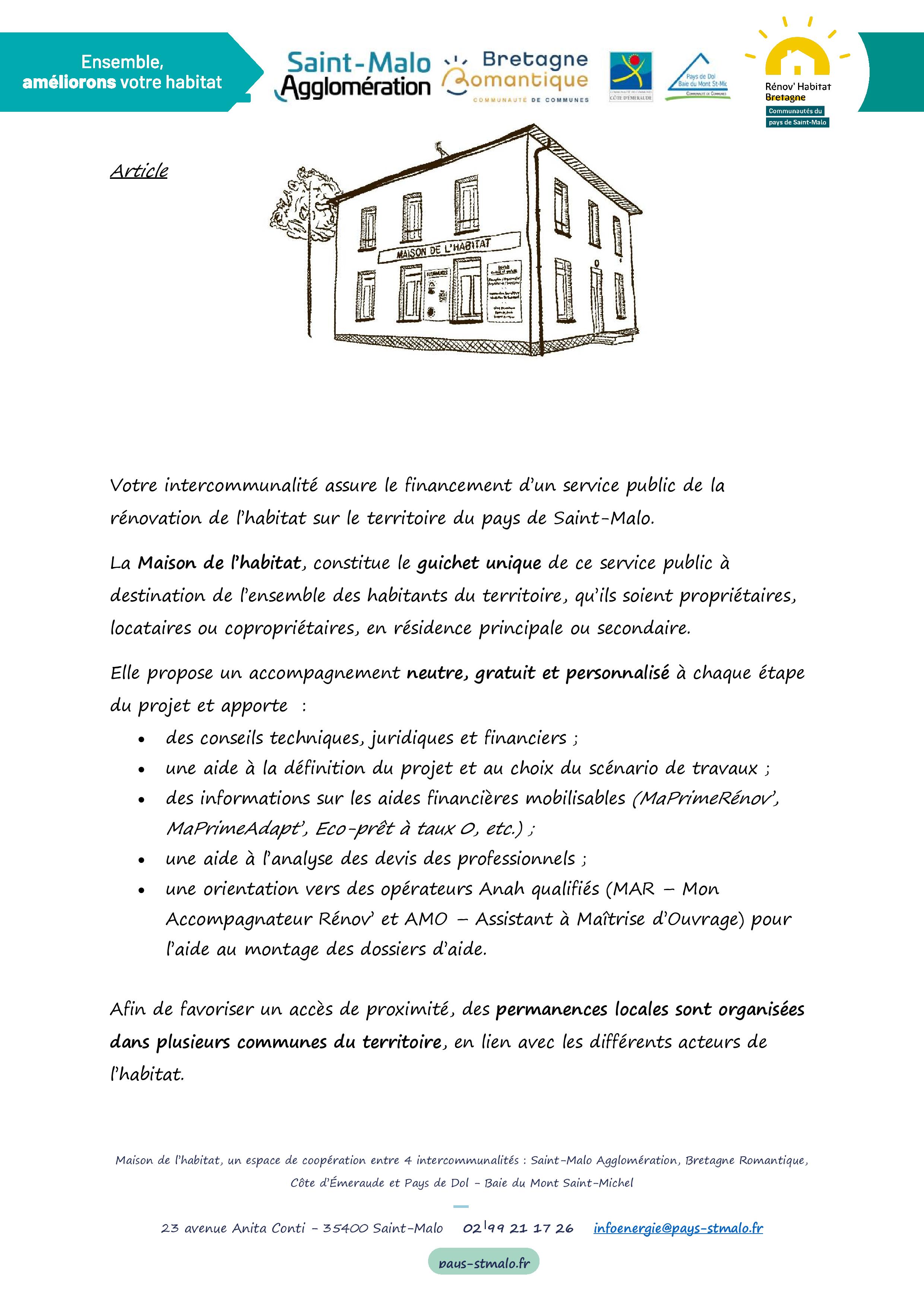 Vous pouvez retrouver l’ensemble des permanences sur le site du Pays de Saint-Malo :